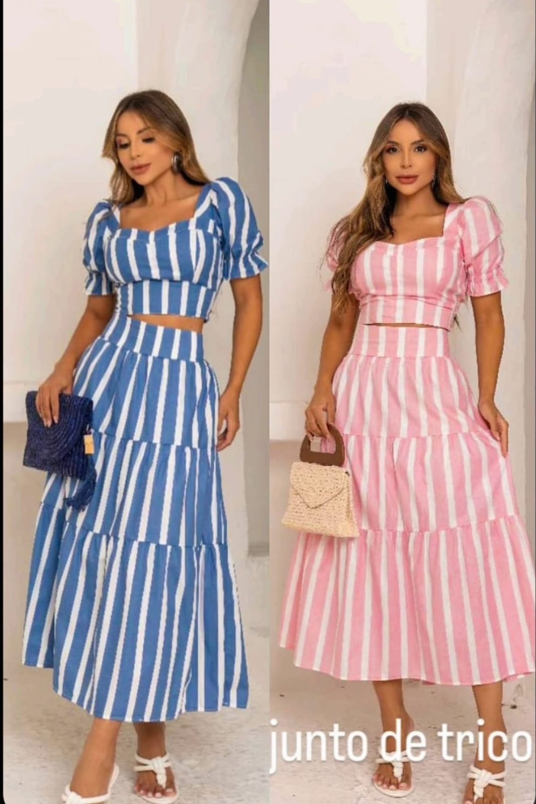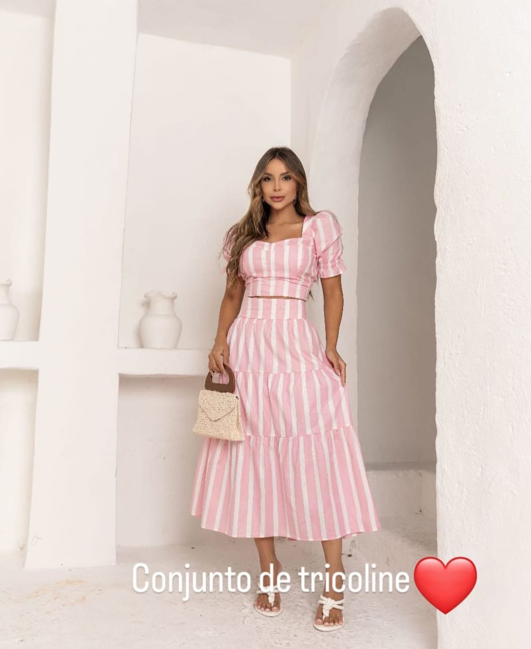 CONJUNTO BLUSA E SAIA DE TRICOLINE