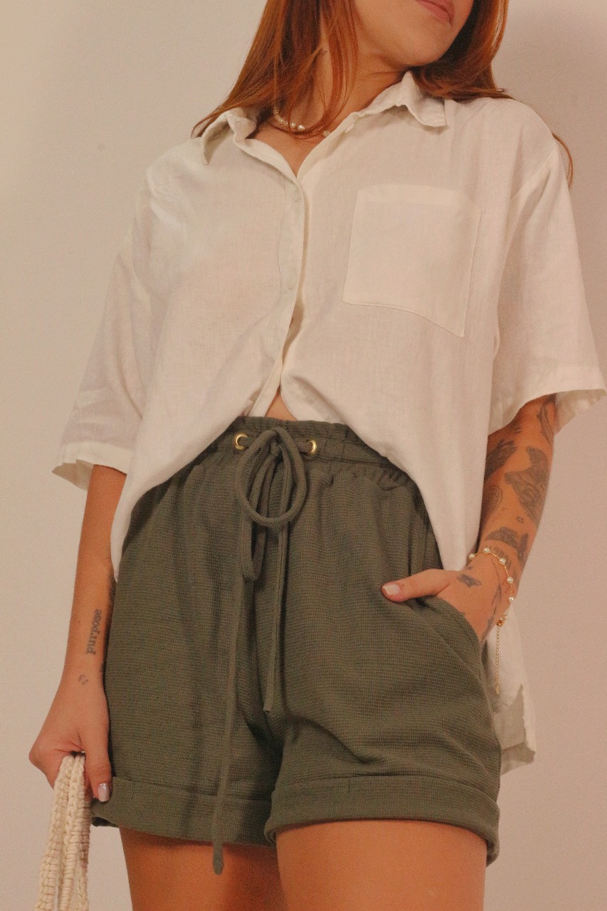 LINDO SHORTS COM ELASTICO E CORDÃO TAMANHO P M G NAS CORES VERDE E BASE