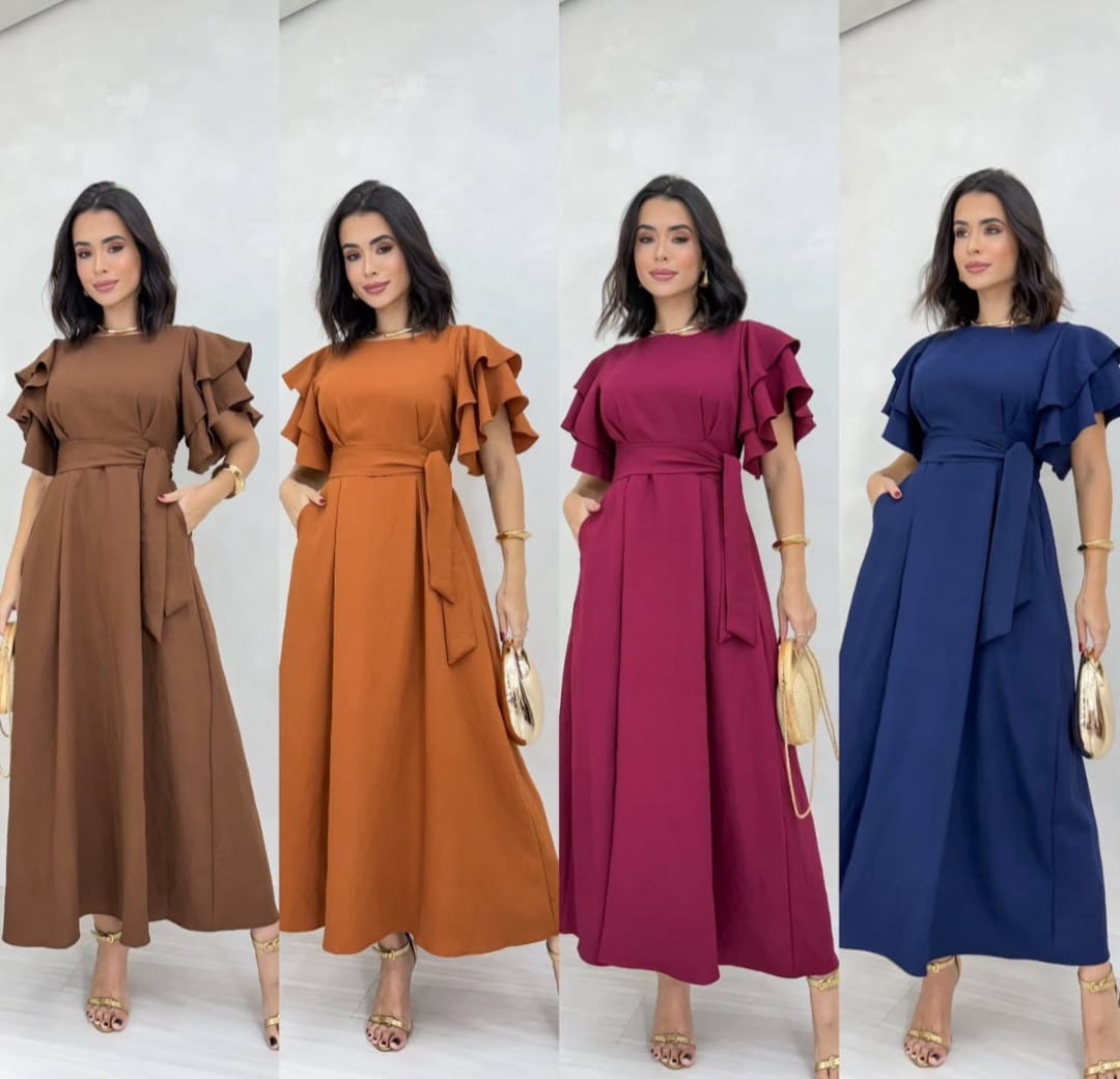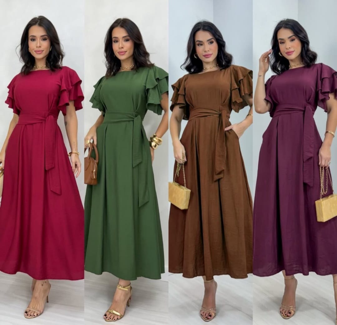 VESTIDO LONGO COM MANGA BUFANTE TAMANHO UNICO VESTE ATÉ 44