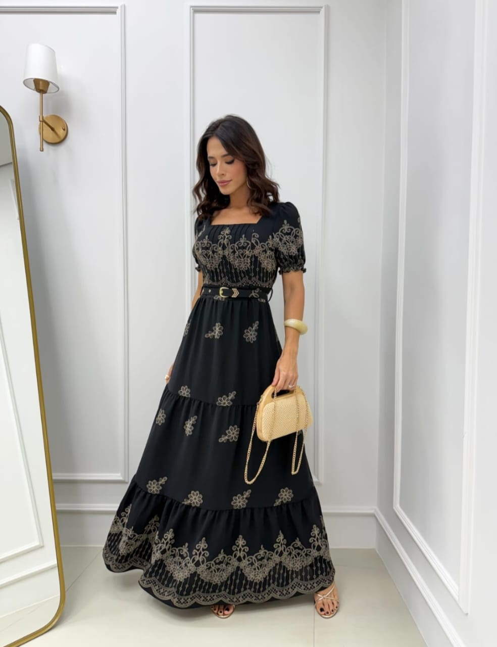 VESTIDO LONGO MAYSA TAMANHO ÚNICO VESTE ATE 44 NAS CORES BRANCO, PRETO, ROSA