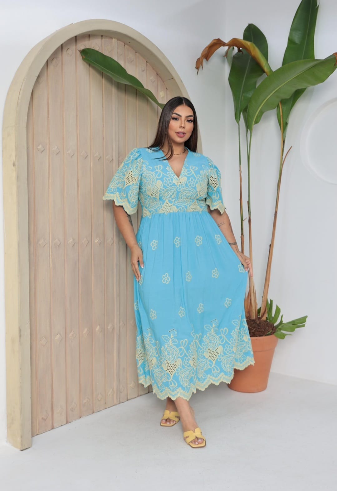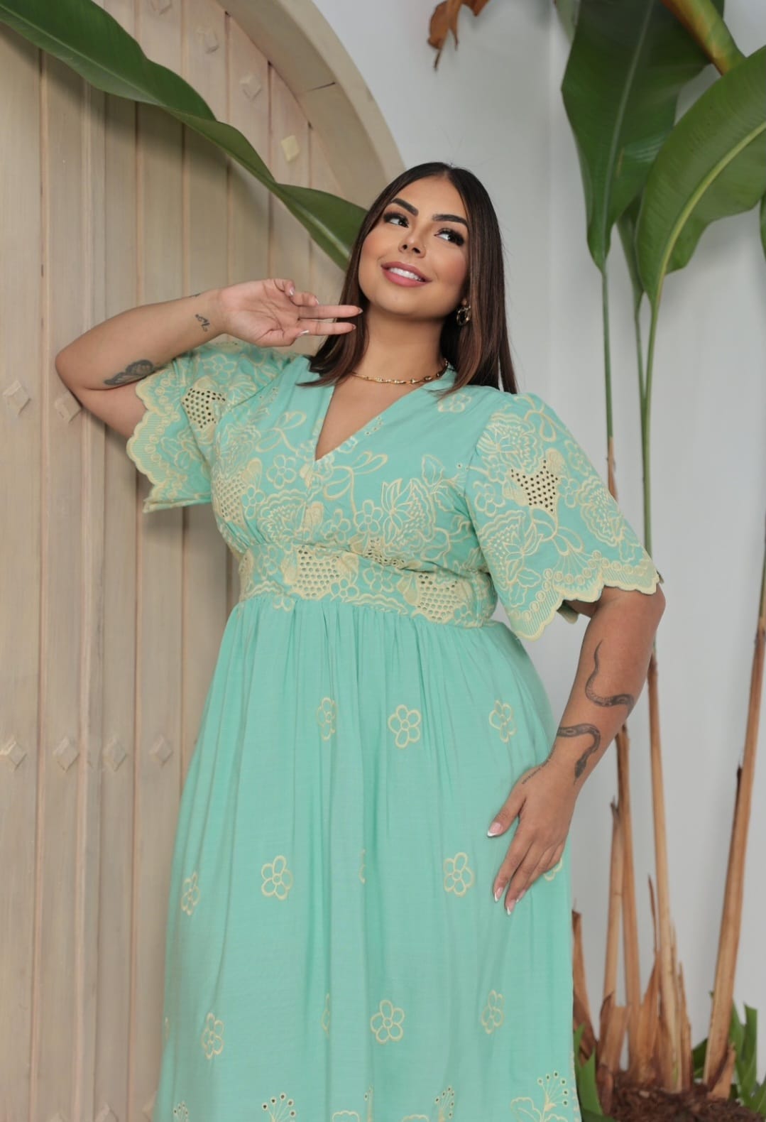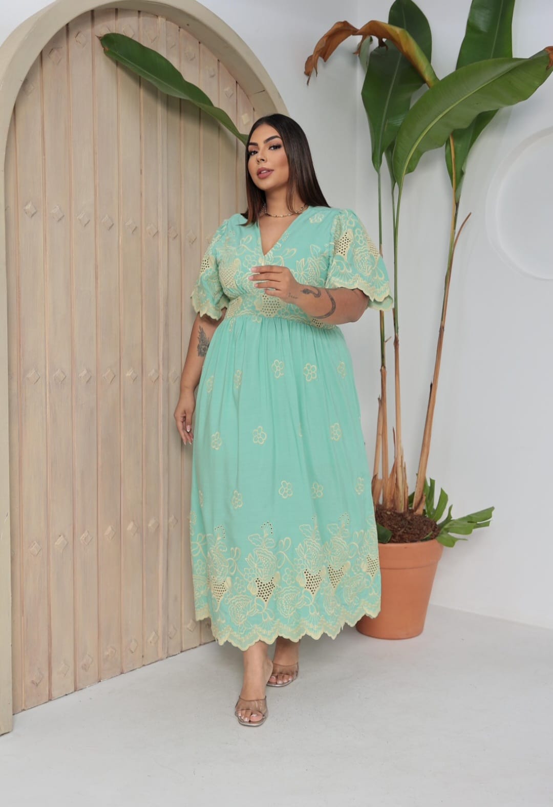VESTIDO PLUS BORDADO EM LESE TAMANHO 46 48 50